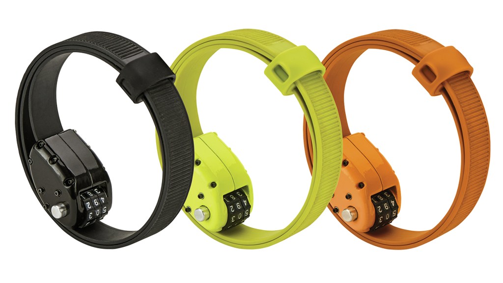 | + Small design for easy storage + Bright colours deter thieves + Cut resistant + No Keys + light weight |